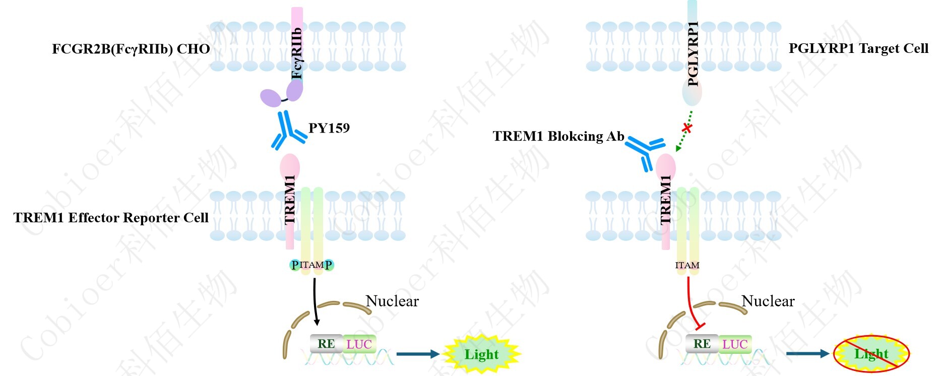 TREM1 Effector Reporter 報告基因藥靶模型很好的模擬了體內(nèi) TREM1 的信號轉(zhuǎn)導(dǎo)過程, 原理見下圖 所示。![]() Figure 1. TREM1 Effector Reporter 細(xì)胞模型原理圖 |