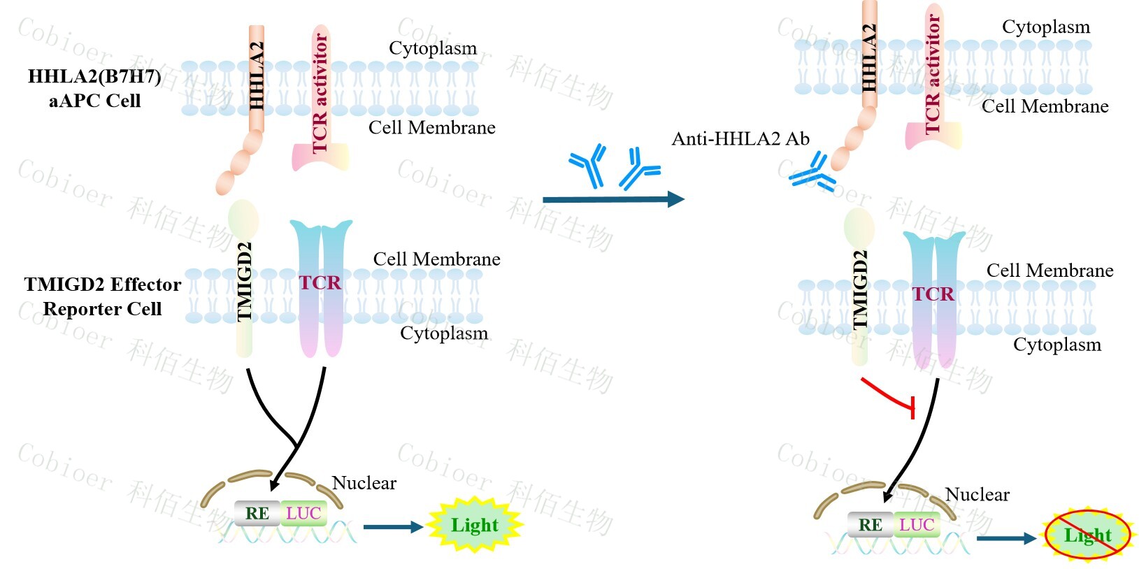 TMIGD2 Effector Reporter Cell 報告基因藥靶模型很好的模擬了體內(nèi) TMIGD2 的信號轉(zhuǎn) 導(dǎo)過程,原理見下圖所示。![]() Figure 1. TMIGD2 Effector Reporter Cell 模型原理圖 |