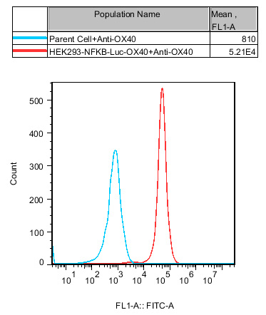 Figure 2. Recombinant OX40/NFκB-Luc/HEK293 stably expressing OX40. |