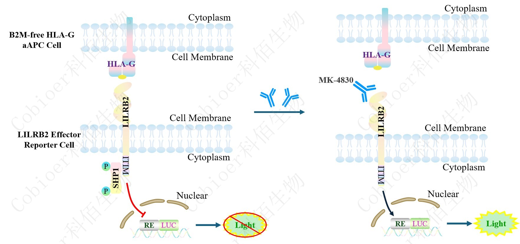 LILRB2 Effector Reporter Cell 報(bào)告基因藥靶模型很好的模擬了體內(nèi) LILRB2 的信號(hào)轉(zhuǎn) 導(dǎo)過(guò)程,原理見(jiàn)下圖所示。![]() ![]() Figure 1. LILRB2 Effector Reporter Cell 模型原理圖 |