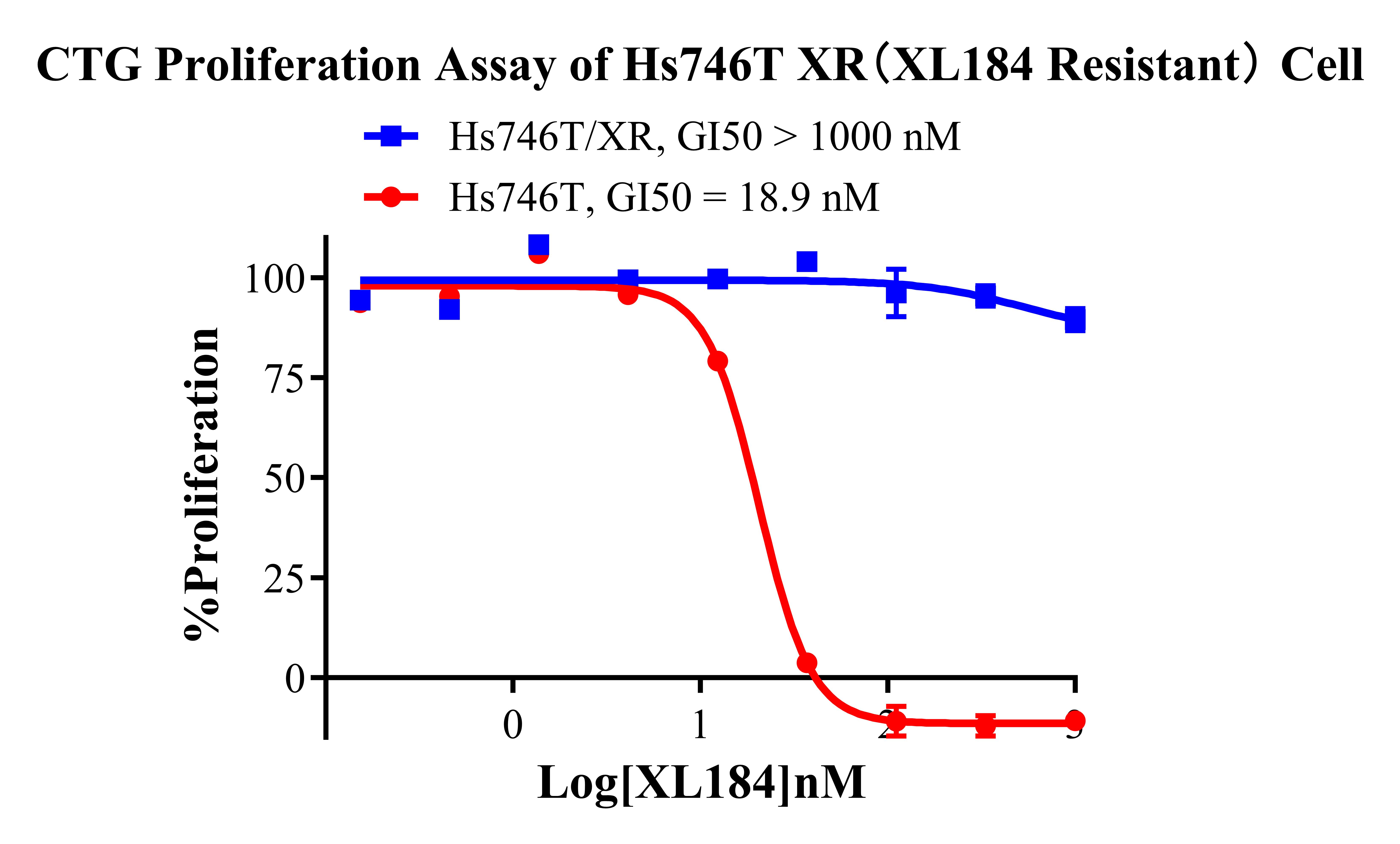 Figure 1. CTG Proliferation Assay of Hs746T & XR (XL184 Resistant) . |