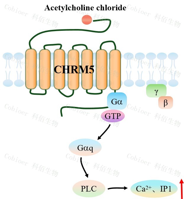 | CHRM5(Cholinergic Receptor Muscarinic 5)是毒蕈堿型乙酰膽堿受體(mAChRs)家 族成員之一,屬于 GPCR,主要分布于中樞神經(jīng)系統(tǒng)(如中腦多巴胺能神經(jīng)元、紋狀體) 及外周組織(如胰島β細(xì)胞),通過調(diào)控乙酰膽堿(ACh)信號影響?yīng)勝p通路、代謝穩(wěn)態(tài)及 藥物成癮行為。ACh 結(jié)合 CHRM5 后激活 Gq/11 蛋白,激活 PLCβ通路,水解 PIP2 生成 IP 3 和 DAG,驅(qū)動鈣離子釋放及 PKC 活化;也通過β-arrestin 通路調(diào)控 ERK 磷酸化,影響基 因表達(dá)與細(xì)胞增殖。 | |
