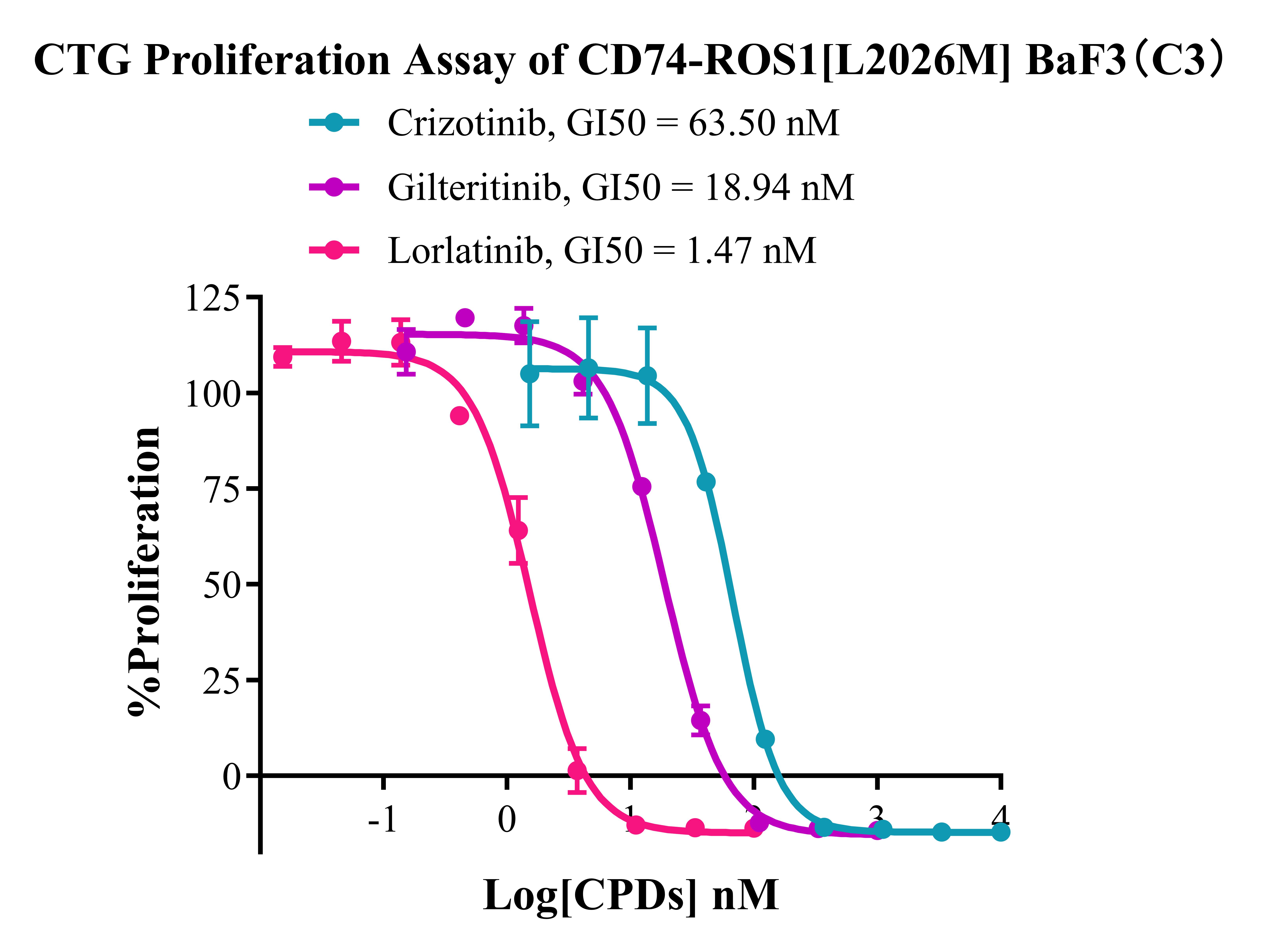 Figure 4. CTG Proliferation Assay of CD74-ROS1[L2026M] BaF3(C3).