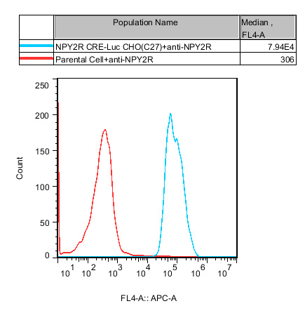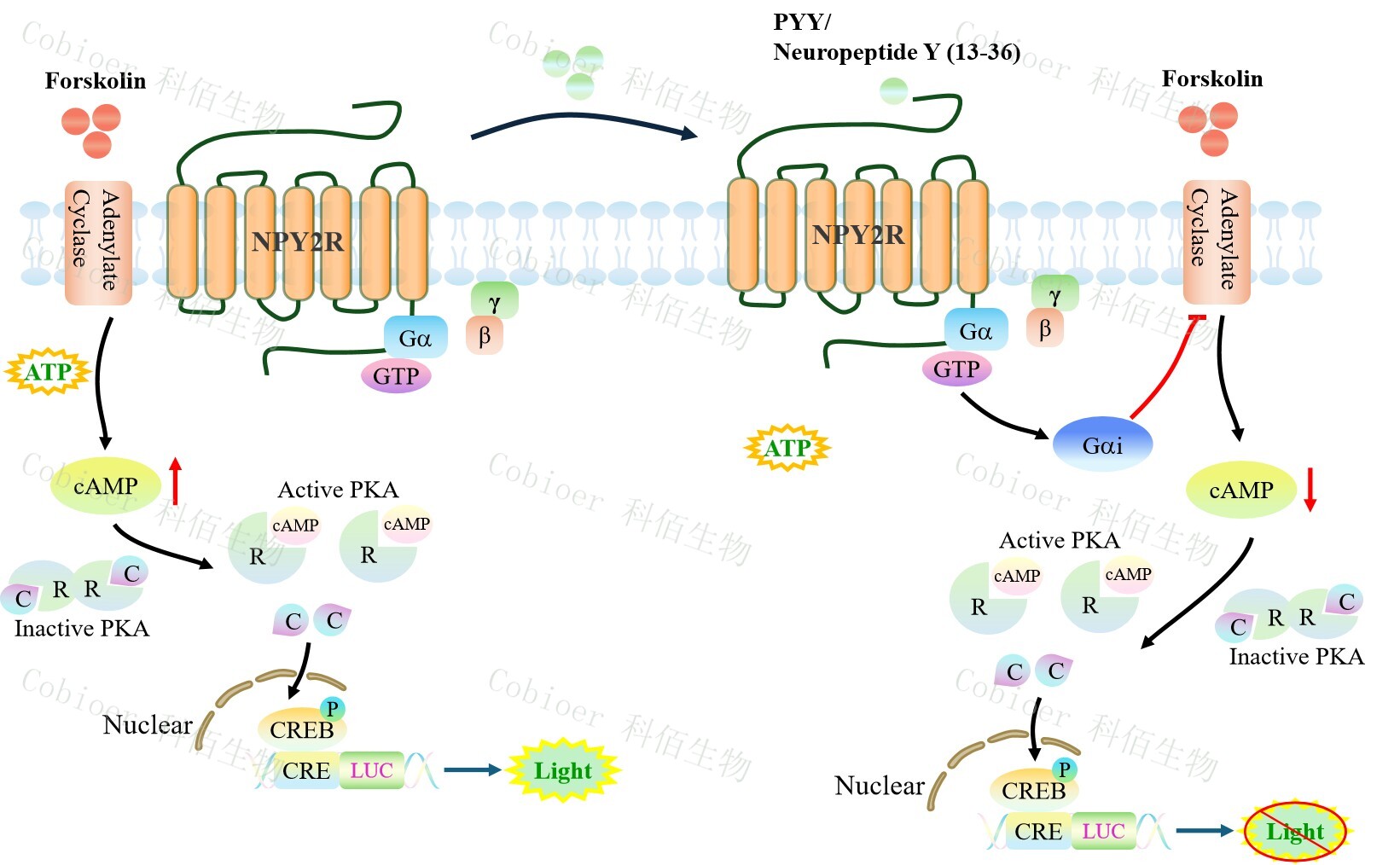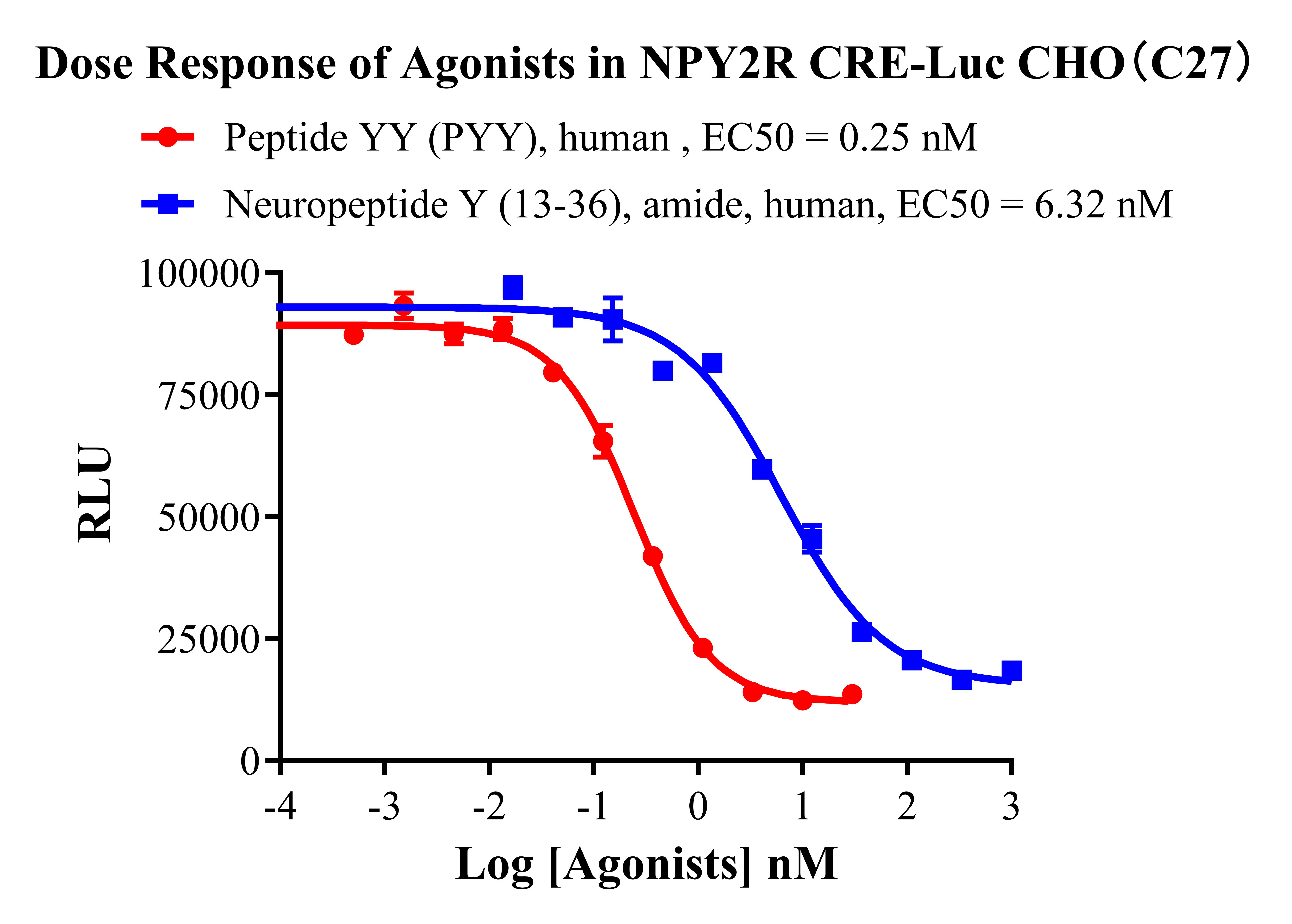 NPY2R CRE-Luc CHO 藥靶模型很好的模擬了體內(nèi) NPY2R 的信號轉(zhuǎn)導過程,原理見下圖所示。![]() Figure 1. NPY2R CRE-Luc CHO 細胞模型原理圖 |