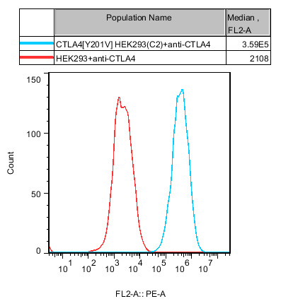 | CTLA4[Y201V] HEK293 細(xì)胞,在 HEK293 細(xì)胞的基礎(chǔ)上,穩(wěn)定表達(dá)人 CTLA4[Y201V]。 | |