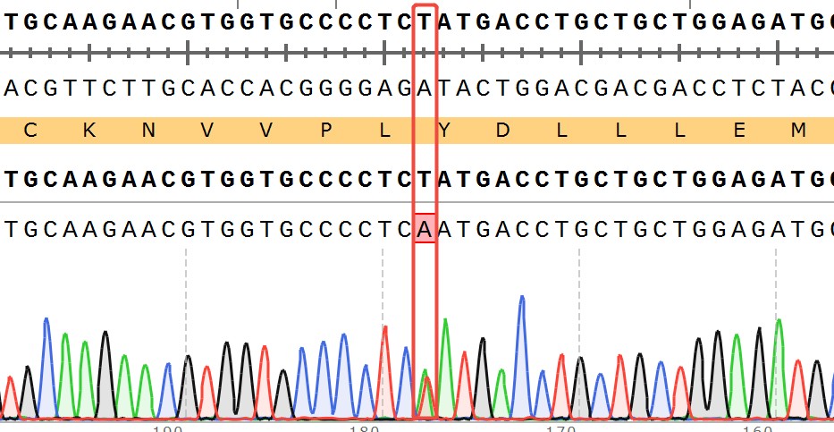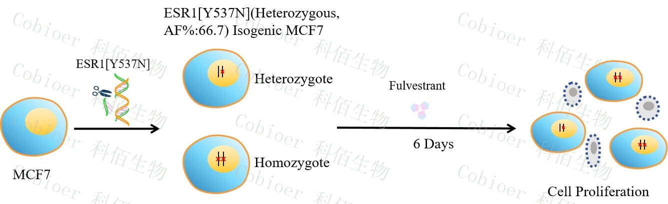 ESR1[Y537N](Heterozygous,AF%66.7) Isogenic MCF7 藥靶細(xì)胞,通過基 因編輯的方式將 ESR1 的 537 位氨基酸酪氨酸(Y)突變?yōu)樘於0罚∟)。![]() Figure 1. ESR1[Y537N](Heterozygous,AF%66.7) Isogenic MCF7 原理示意圖 |