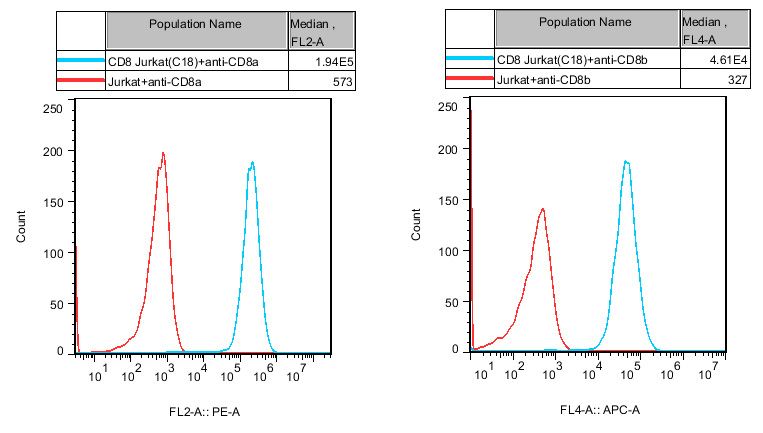 Figure 1. Recombinant CD8 Jurkat stably expressing CD8a & CD8b.