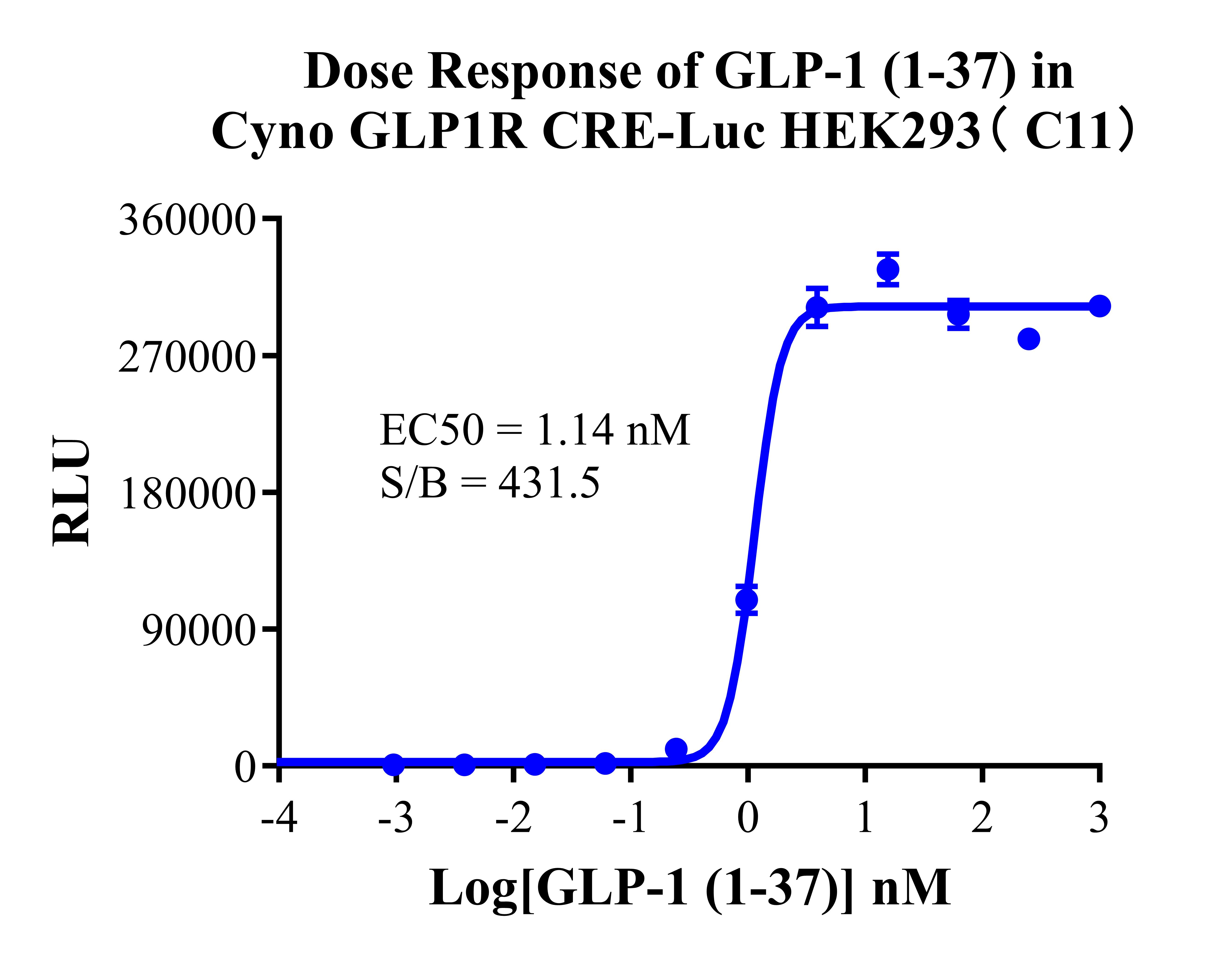 Figure 3. Dose response of GLP-1 (1-37) in Cyno GLP1R CRE-Luc HEK293 Cells (C11). |