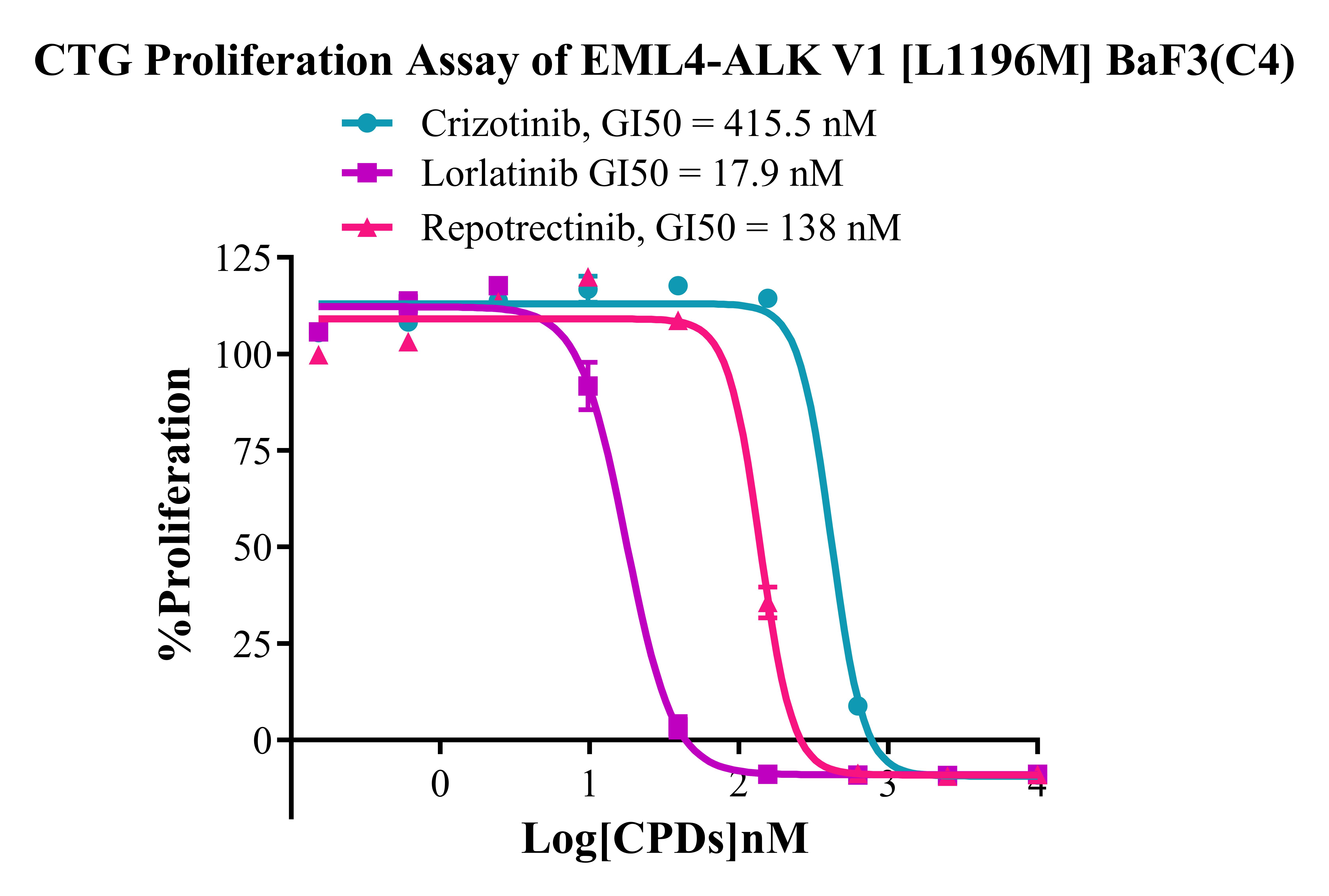 Figure 5. CTG Proliferation Assay of EML4-ALK V1 [L1196M] BaF3(C4).