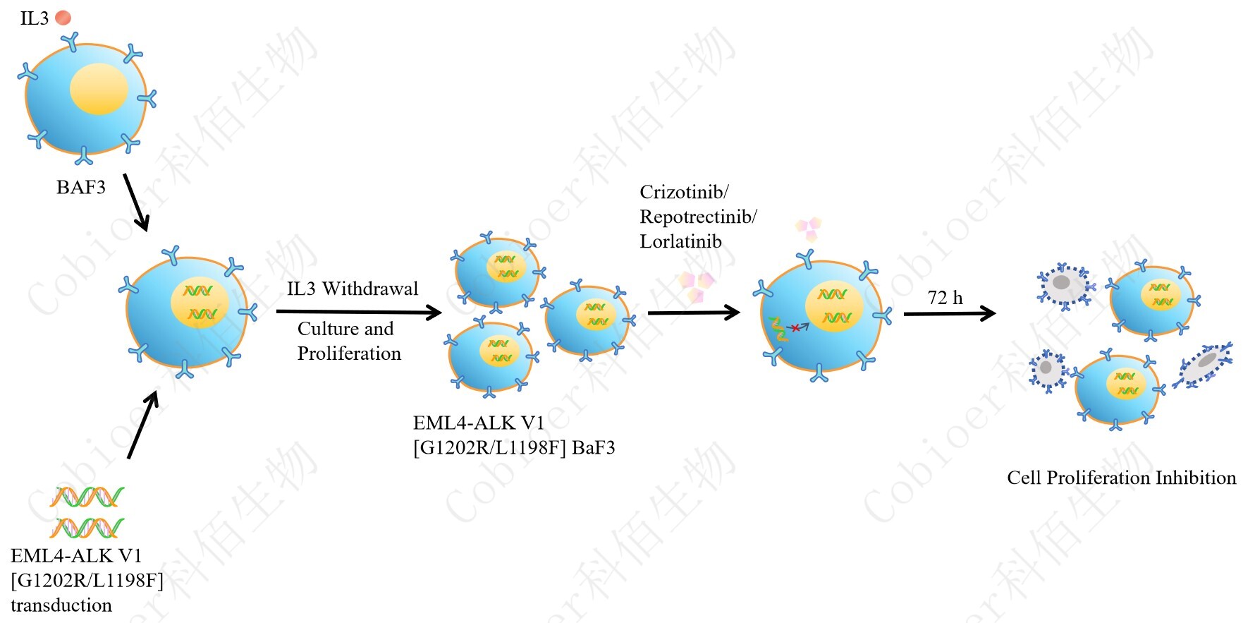 Figure 1. EML4-ALK V1 [G1202R/L1198F] BaF3 細胞的構(gòu)建原理圖