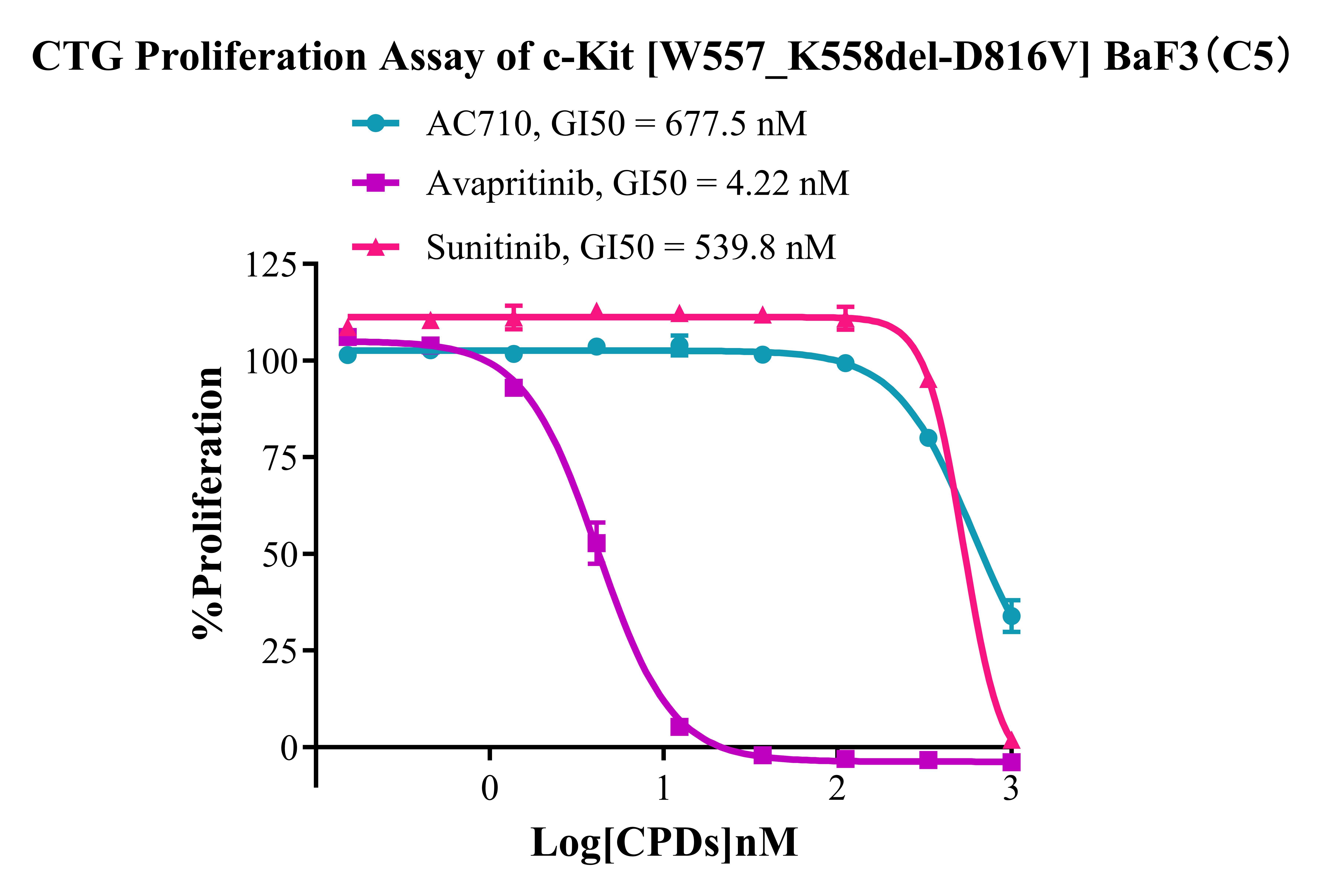 Figure 5. CTG Proliferation Assay of  c-Kit [W557_ K558del-D816V]BaF3(C5).