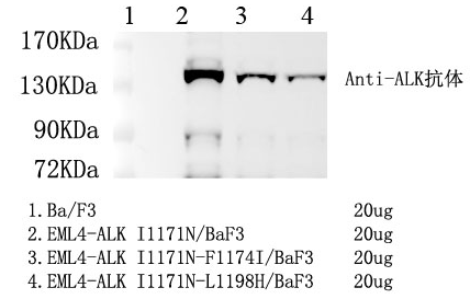 1.WB of EML4-ALK V1 [I1171N]/BaF3 Figure 2.WB of EML4-ALK V1 [I1171N]/BaF3 |