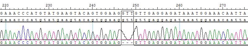 KIT V560del (also reported as V559del) results in the deletion of an amino acid in the juxtamembrane domain (exon 11) of the Kit protein at amino acid 560 (PMID: 12879016). V560del confers a gain of function to Kit, resulting in constitutive, ligand independent phosphorylation of Kit and activation of Akt in cell culture (PMID: 15236194, PMID: 22282465), and transformation of cultured cells (PMID: 19861435). | |