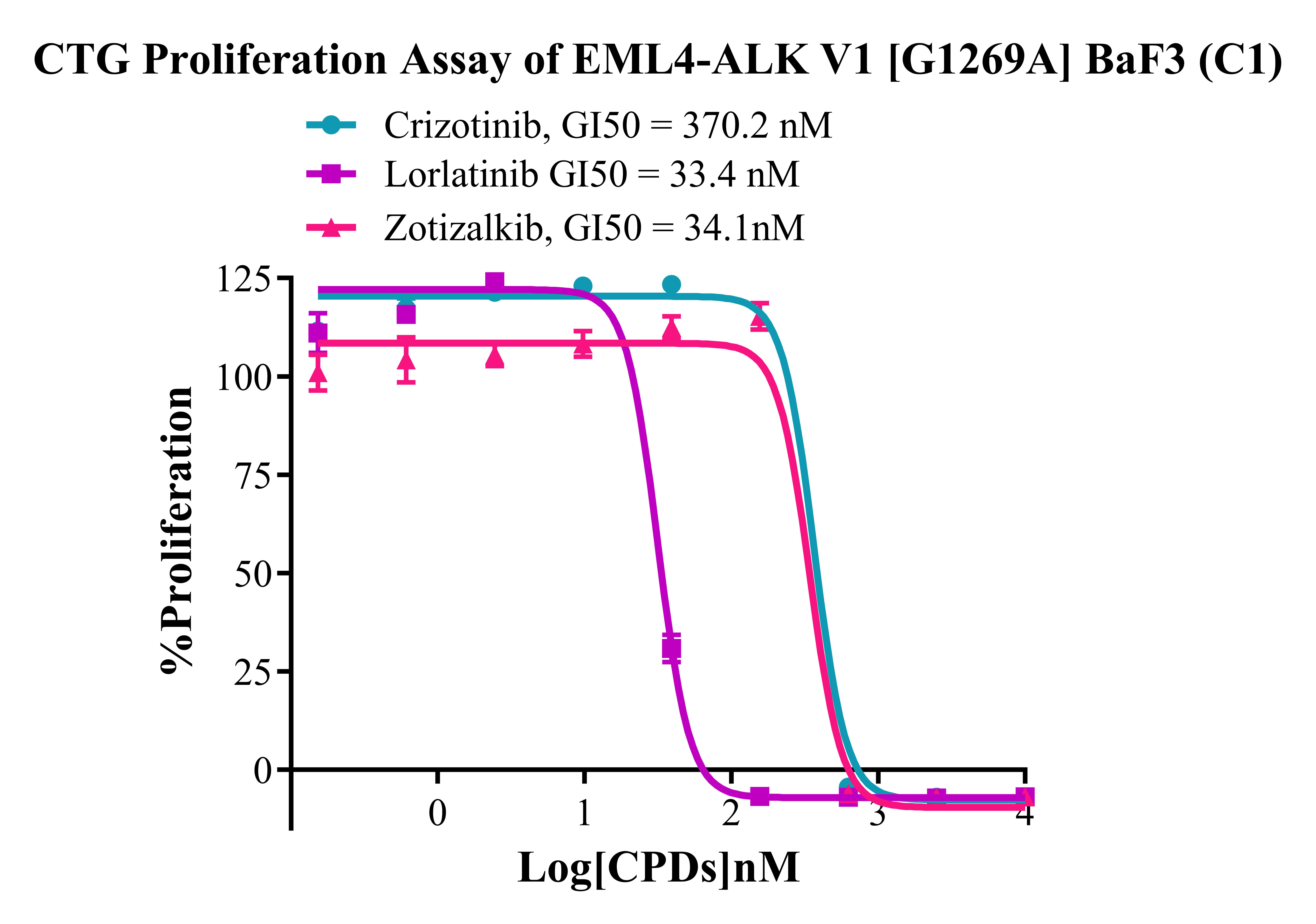 Figure 4. CTG Proliferation Assay of EML4-ALK V1 [G1269A] BaF3(C1).