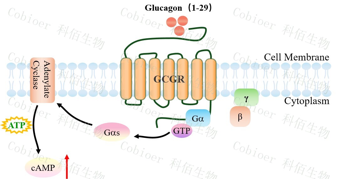 胰高血糖素是一種胰腺肽激素,作為胰島素的反調(diào)節(jié)激素,刺激葡萄糖通過肝臟釋放, 維持葡萄糖穩(wěn)態(tài)。GCGR 是一種 B 類 GPCR,最初被描述為與腺苷酸環(huán)化酶功能相連的胰 高血糖素結(jié)合體。它在維持葡萄糖穩(wěn)態(tài)中起關(guān)鍵作用,因此被認(rèn)為是治療糖尿病的一個有 價值的靶點。 GCGR 的天然配體是胰高血糖素。胰高血糖素與受體結(jié)合激活 Gs 蛋白,從而激活腺苷 酸環(huán)化酶。GCGR 受體與天然配體胰高血糖素結(jié)合調(diào)節(jié)體內(nèi)葡萄糖穩(wěn)態(tài),是Ⅱ型糖尿病的 重要藥物靶點。 |
