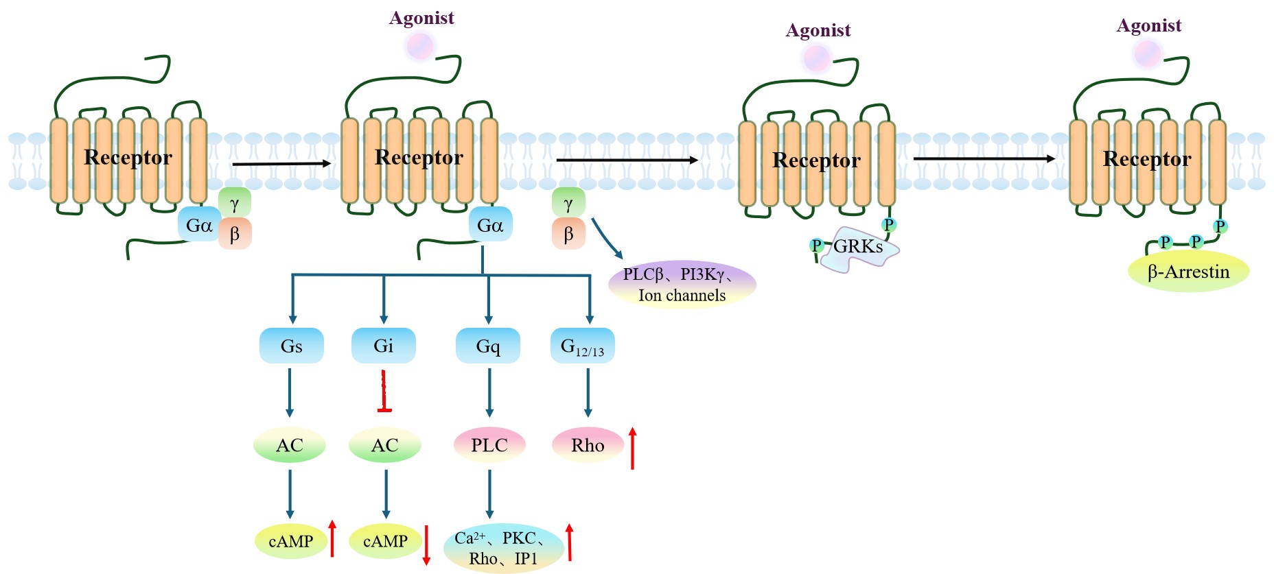 GPCR(G Protein-Coupled Receptor),即G蛋白偶聯(lián)受體,人類GPCR家族根據(jù)其氨基酸序列分為A類(視紫紅質(zhì))、B類(分泌素和粘附)、 C類(谷氨酸鹽)和F類(Frizzled)亞家族。GPCR藥物已涉及多個(gè)熱門治療領(lǐng)域,如肥胖、阿爾茲海默癥、低鈣血癥、多發(fā)硬化癥、腫瘤等領(lǐng)域。