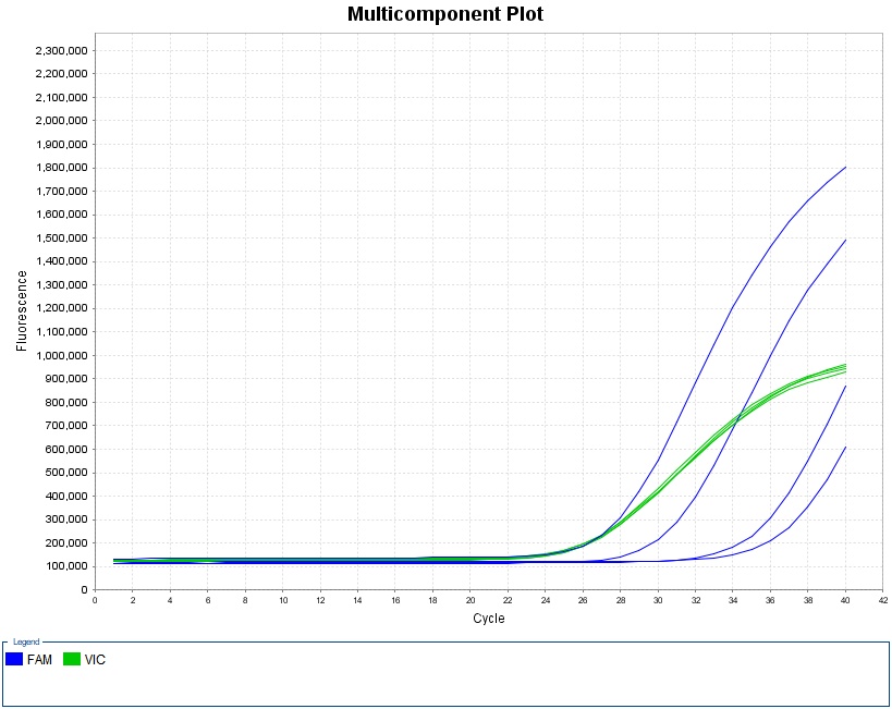 實(shí)時(shí)熒光定量PCR在檢測(cè)體系中加入熒光基團(tuán),通過(guò)PCR 擴(kuò)增反應(yīng)中每一個(gè)循環(huán)產(chǎn)物熒光信號(hào)的實(shí)時(shí)檢測(cè),從而實(shí)現(xiàn)對(duì)起始模板的定量及定性分析。隨著PCR反應(yīng)的不斷進(jìn)行,帶熒光的PCR產(chǎn)物逐步累積,信號(hào)強(qiáng)度等比例增強(qiáng)。這樣,我們可以通過(guò)熒光信號(hào)的變化來(lái)實(shí)時(shí)監(jiān)控PCR產(chǎn)物量的變化,得到一條擴(kuò)增曲線。