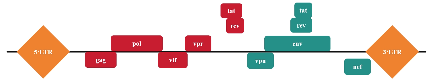 2. 調(diào)控基因包含:tat、rev