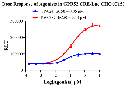為了助力GPR52藥物的研發(fā),科佰生物及時開發(fā)了基于CREB/cAMP信號通路的GPR52細(xì)胞模型,用于候選藥物早期機(jī)理研究。