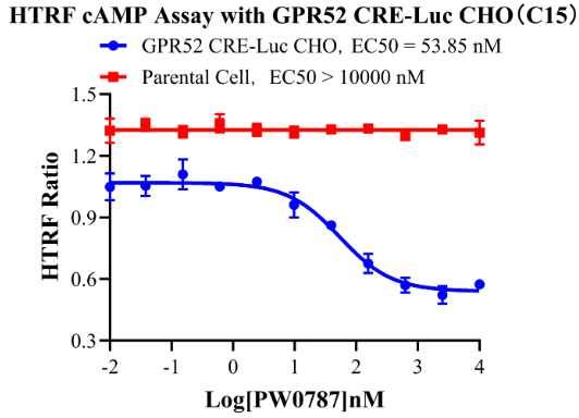 Figure 6. HTRF cAMP Assay with GPR52 CRE-Luc CHO(C15).