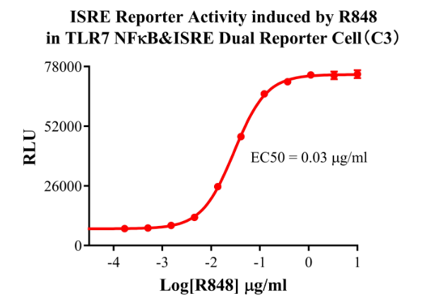 Figure 8. ISRE Reporter Activity induced by R848 in TLR7 NFκB&ISRE Dual Reporter Cell(C3).