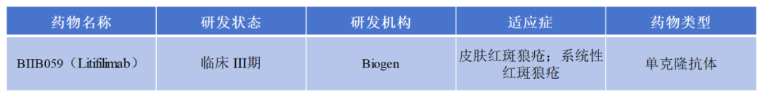 目前,全球關(guān)于BDCA-2這個(gè)靶點(diǎn)的在研管線并沒(méi)有很多,進(jìn)展最快的是渤健生物開(kāi)發(fā)的BDCA-2單抗BIIB059(Litifilimab),通過(guò)抑制BDCA-2,減少IFN-I等炎性細(xì)胞因子的產(chǎn)生,從而達(dá)到治療紅斑狼瘡的目的。