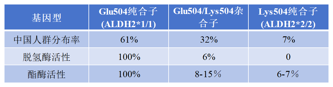 同時(shí)東方人中高發(fā)生率的急性酒精中毒也與該突變有關(guān)。突變后,酶活性缺失或者降低,導(dǎo)致乙醛在肝臟內(nèi)大量累積,會(huì)導(dǎo)致喝酒后產(chǎn)生臉紅、頭暈、心跳加速等,嚴(yán)重者甚至?xí)?dǎo)致酒精性肝病、癌癥(肝癌、消化道癌、胃癌)等不良反應(yīng)。