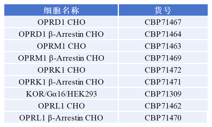 針對OPR及相關(guān)信號通路藥物的檢測,科佰生物及時開發(fā)了OPRM1,OPRD1,OPRK1,及OPRL1等細(xì)胞模型,助力OPR藥物的研發(fā)。