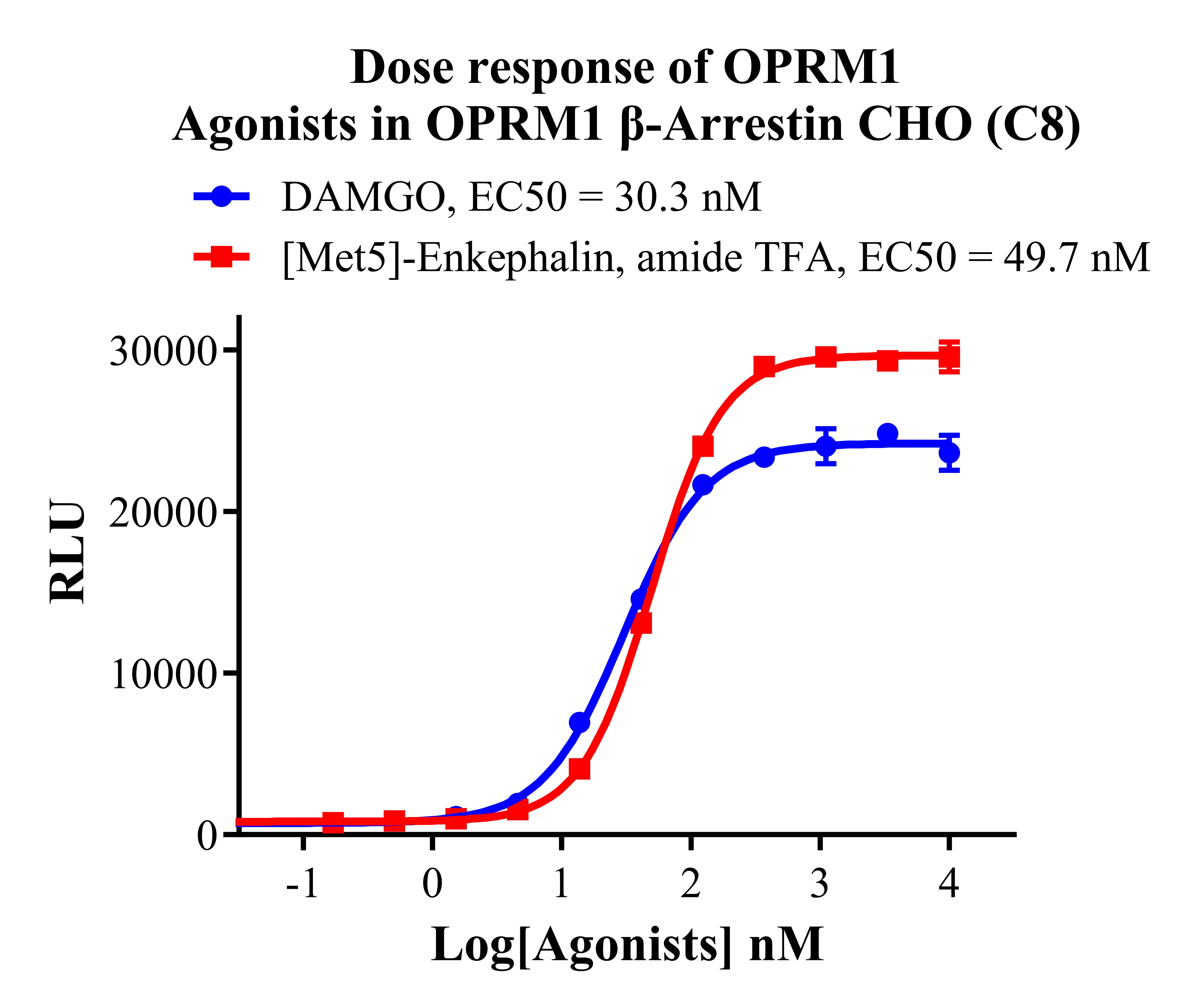 Figure 8. Dose response of  OPRM1 Agonists in OPRM1 β-Arrestin CHO(C8).
